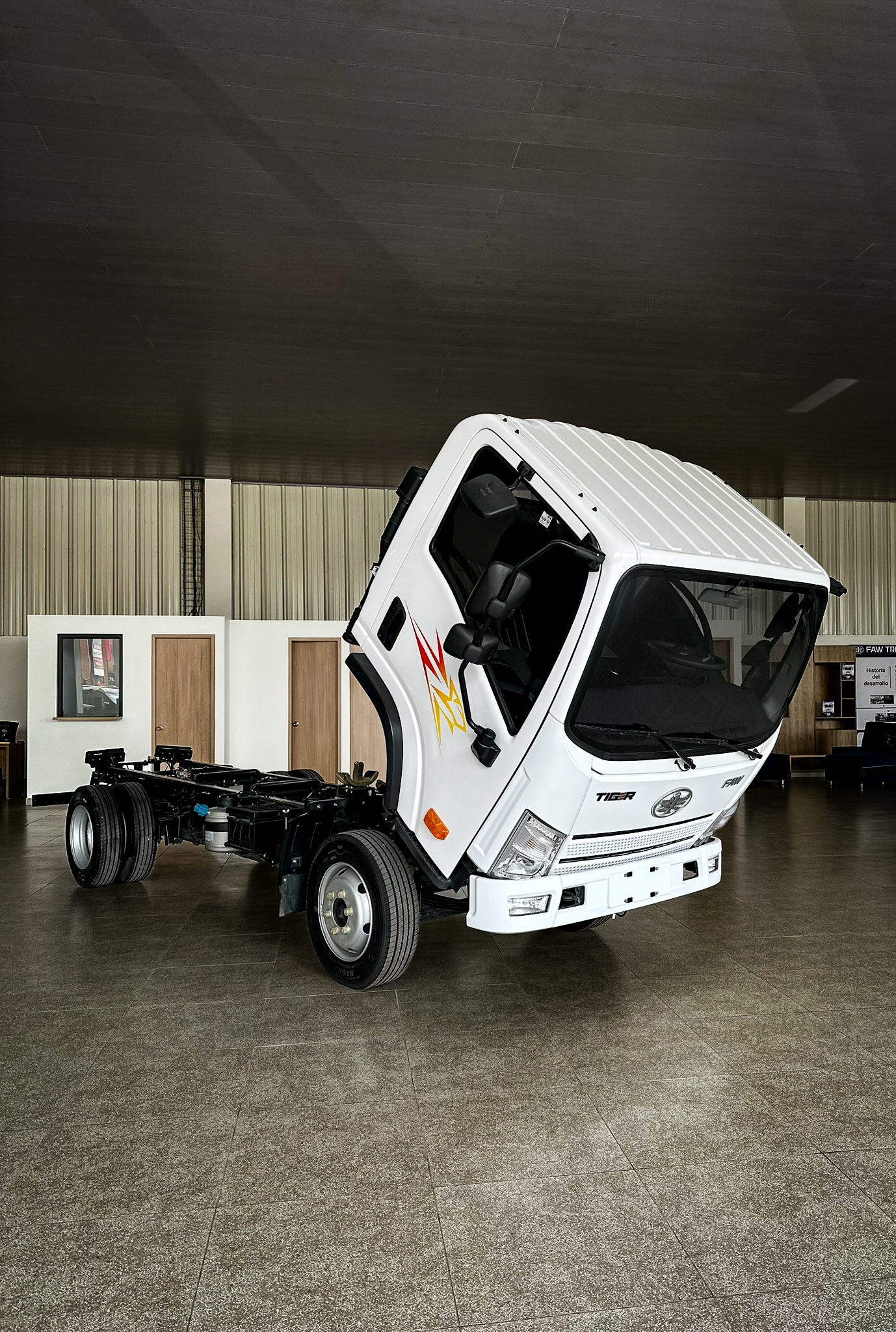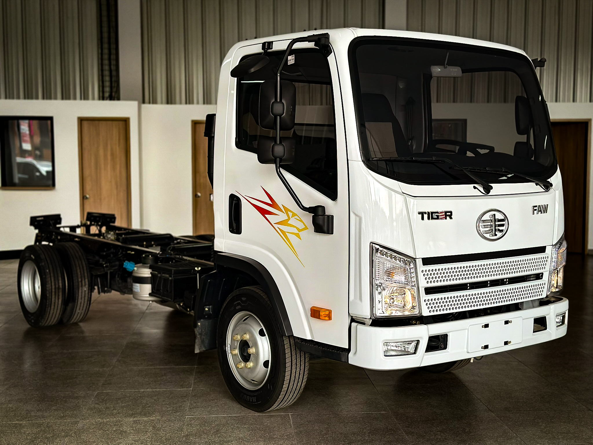 Diseñado para los terrenos más desafiantes de la geografía colombiana, el FAW WKR Tiger con doble llanta trasera ofrece una huella de tracción superior para operaciones donde la estabilidad y la tracción son fundamentales. Su configuración de eje trasero con doble llanta distribuye mejor el peso de la carga, proporcionando mayor adherencia y seguridad en diferentes tipos de terreno. Su chasis de 4.9 metros carrozables permite instalar múltiples configuraciones de carrocería según las necesidades de tu negocio, desde transporte de mercancía hasta soluciones especializadas.